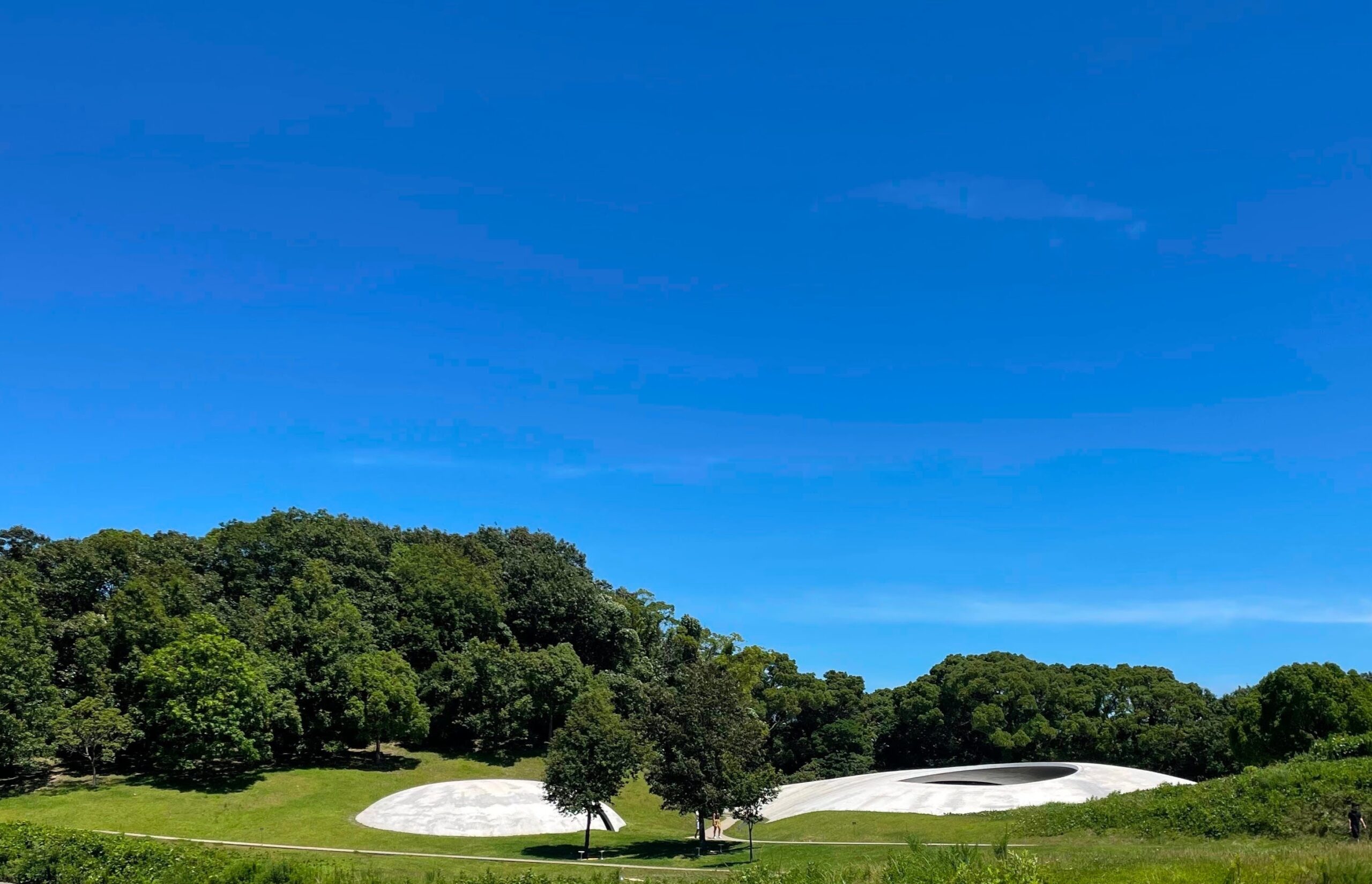The Teshima Art Museum, designed by artist Rei Naito and architect Ryue Nishizawa, is located on a hill in Karato, Teshima, overlooking the Seto Inland Sea. Working with local residents, the artist reclaimed a previously fallow rice terrace and installed a teardrop-shaped building in one corner of the vast site. Measuring 40 x 60 meters and rising to a maximum height of 4.5 meters, the building is a pillarless concrete shell structure. Two openings in the ceiling allow the surrounding wind, sound, and light to enter directly into the interior, creating an organic space where the building and nature resonate with each other. A "fountain" is born within the interior throughout the day, and the landscape conveys an infinite variety of expressions as the seasons change and time passes.